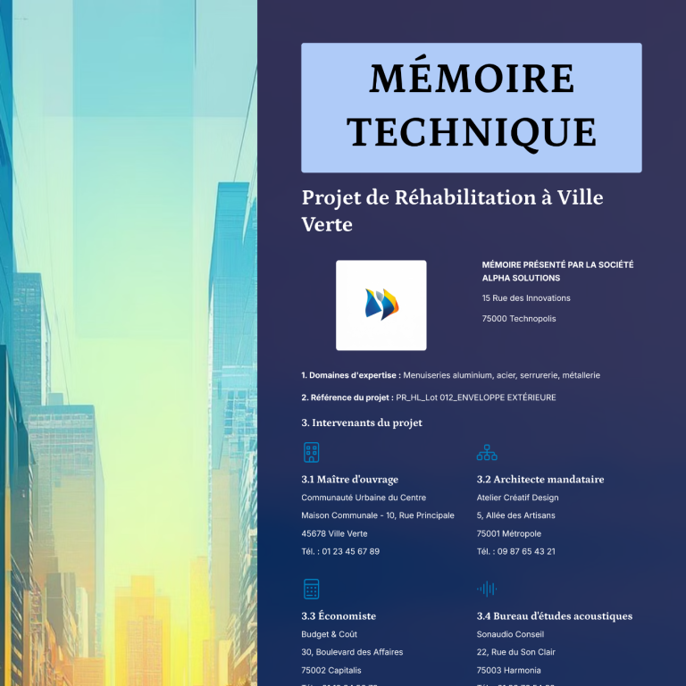 Chez FASTNRETAIL, nous vous accompagnons dans la rédaction de mémoires techniques complets, sur mesure, adaptés aux exigences des donneurs d'ordre.